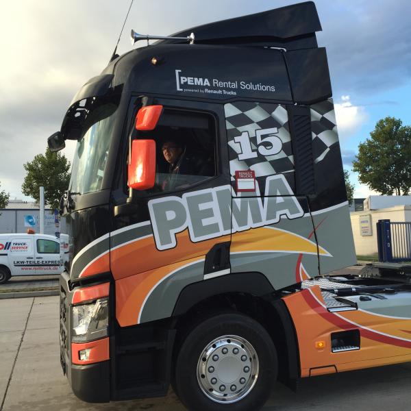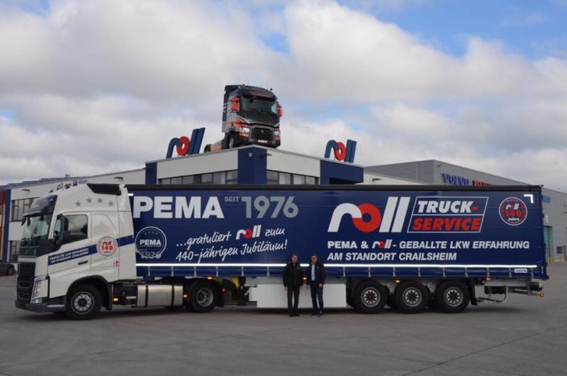 Anlässlich der 140-Jahr Feier der Roll Firmengruppe übergab PEMA, der in Europa führende herstellerunabhängige Nutzfahrzeugvermieter von Komplettzügen der schweren Klasse , ein Fahrzeug mit einer Sonder-Edition.