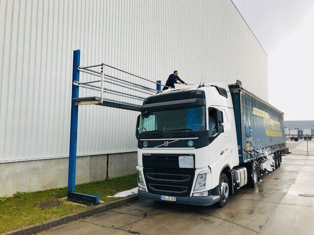 Um sichere Straßen ohne umherfliegende Eisplatten zu gewährleisten, hat die Firma Roll extra ein spezielles Podest für LKW Fahrer installiert. Hier können die Fahrer vor jeder Fahrt die Schneemassen und Eisplatten problem- und gefahrenlos von Ihrem LKW-Auflieger entfernen.