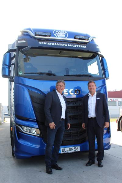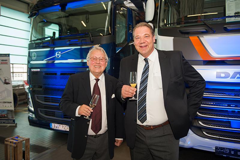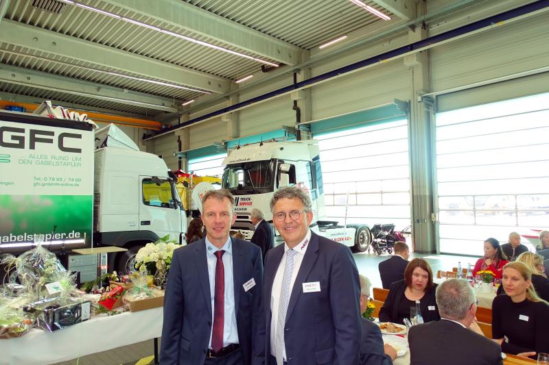 Foto: v.l.n.r.: Ronny Pflug (Geschäftsführer Roll Truck-Service Crailsheim), Christian Coolseat (Geschäftsführer Volvo Trucks Deutschland),