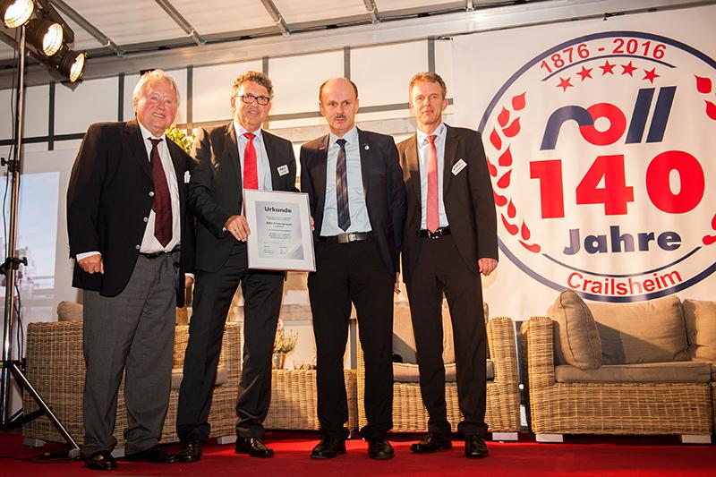Die Roll Firmengruppe dankt dem Jubilar für seinen Einsatz und seine Treue und überreicht ihm die Urkunde der Handwerkskammer.