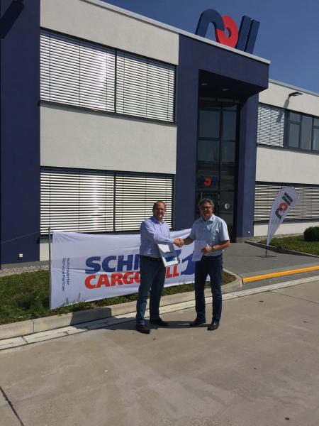 Foto v.l.n.r.: Kai Dickhaut After Sales Manager von Schmitz Cargobull und Ronny Pflug Geschäftsführer von Roll Truck Service